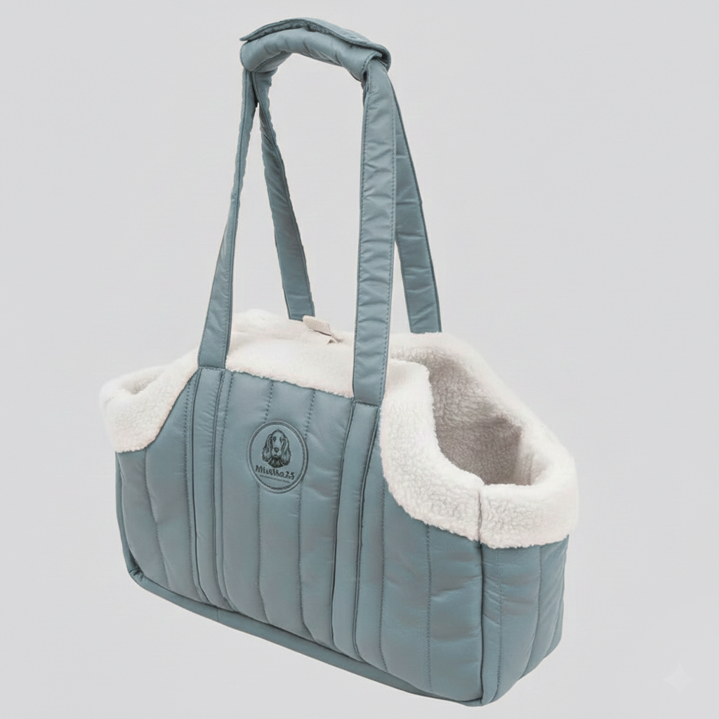 Sac fourre-tout d’hiver pour animaux de compagnie en cuir naturel bleu claire
